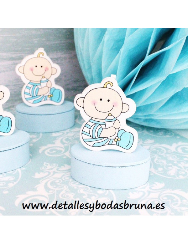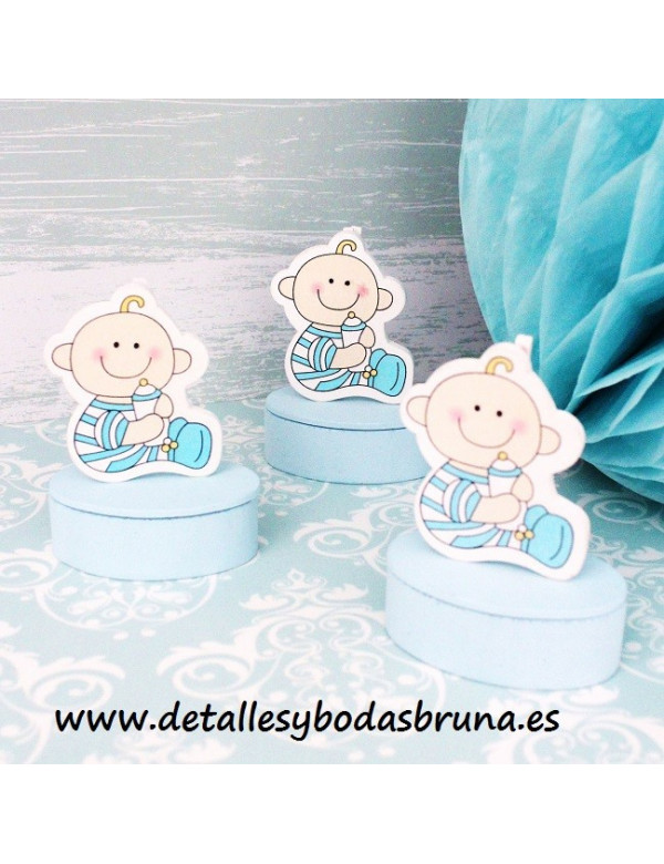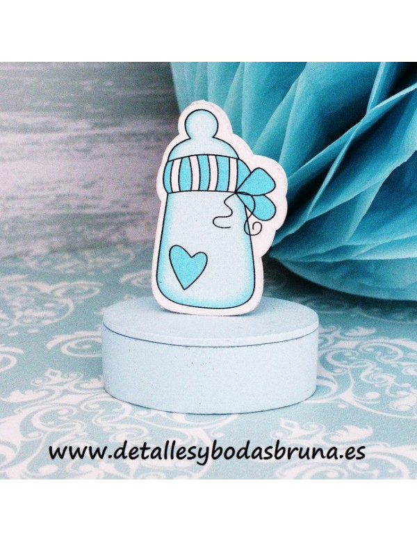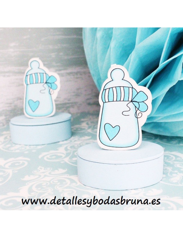 CAJITAS OVALADAS CON CIERRE IMANTADO, EN COLOR celeste DECORADAS EN SU PARTE SUPERIOR CON MOTIVOS DE BEBÉ, COMO BIBERÓN, NIÑO, CARRITO... DETALLE ORIGINAL PARA LAS MUJERES Y NIÑAS INVITADAS AL BAUTIZO O BABY SHOWER DE TU HIJo.