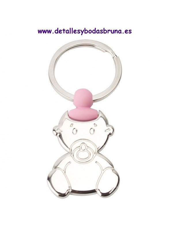 Prácticos llaveros de metal con forma de bebe en tonos rosa. Perfectos como detalle para bautizos y otros eventos