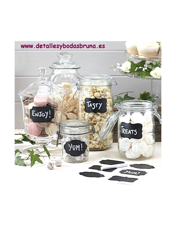 Añade un aire nostálgico a la decoración de tu evento con estas originales Etiquetas Adhesivas de pizarra, perfectas para poner en jarras, bomboneras... o en cualquier otro lugar que se te ocurra.