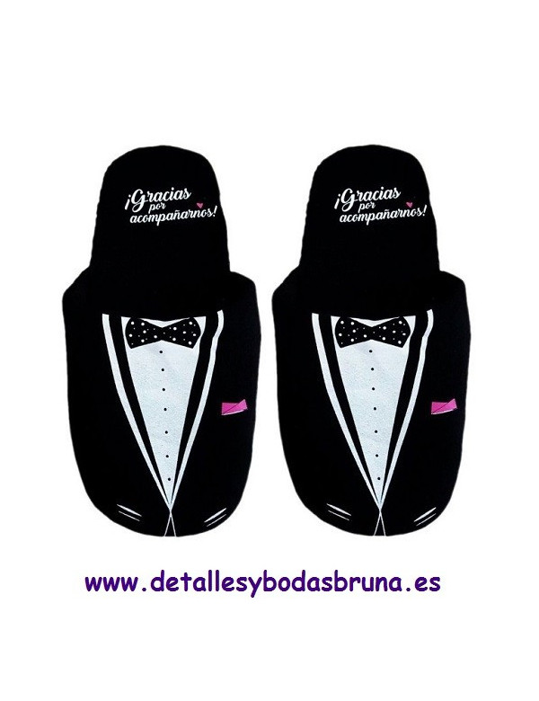 PARA QUE TUS INVITADoS SIGAN DISFRUTANDO DE LA FIESTA OLVIDÁNDOSE DE LOS INCÓMODOS zapatos, REGÁLALES ESTAS CÓMODAS ZAPATILLAS CON UN DIVERTIDO DISEÑO DE TRAJE DE NOVIo.