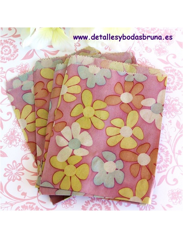 Originales bolsas de papel con motivos florales de margaritas en tonos vintage.