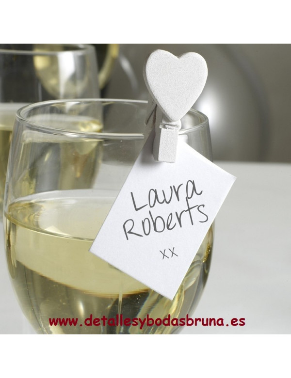 Pinzas de madera con forma de Corazón en color blanco, ideales para poner en los detalles de tus invitados, para decorar el buffet de bienvenida, para las servilletas, para usar como marcasitios, para el candy bar...