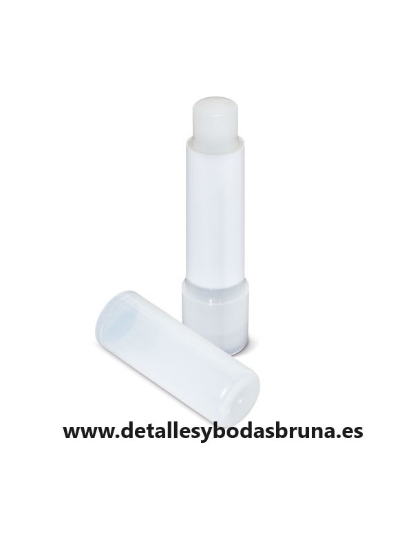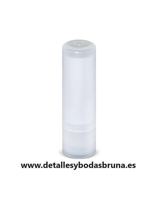 BÁLSAMO LABIAL CON FORMA DE TUBO EN COLOR BLANCO TRANSLÚCIDO, DETALLE ORIGINAL Y PRÁCTICO PARA LOS INVITADOS A TU BODA O COMUNIÓN, COMPLETA EL DETALLE CON NUESTROS ESPEJOS, CREMAS O ABREBOTELLAS PERSONALIZADOS.