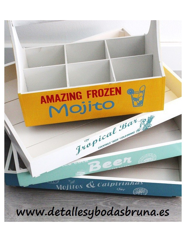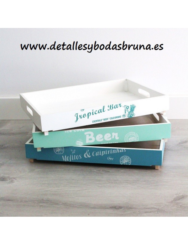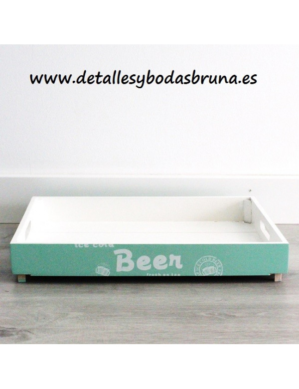 BANDEJA O CAJA DE MADERA DE ESTILO VINTAGE CON IMPRESIÓN EN SU FRONTAL CON EL TEXTO beer.