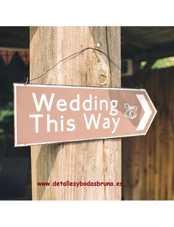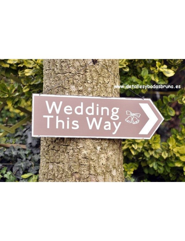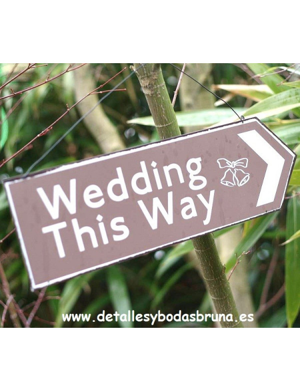 Añade un aire divertido a la decoración de tu evento con esta Original Señal que indica el camino a la boda, banquete o ceremonia, a tus invitados