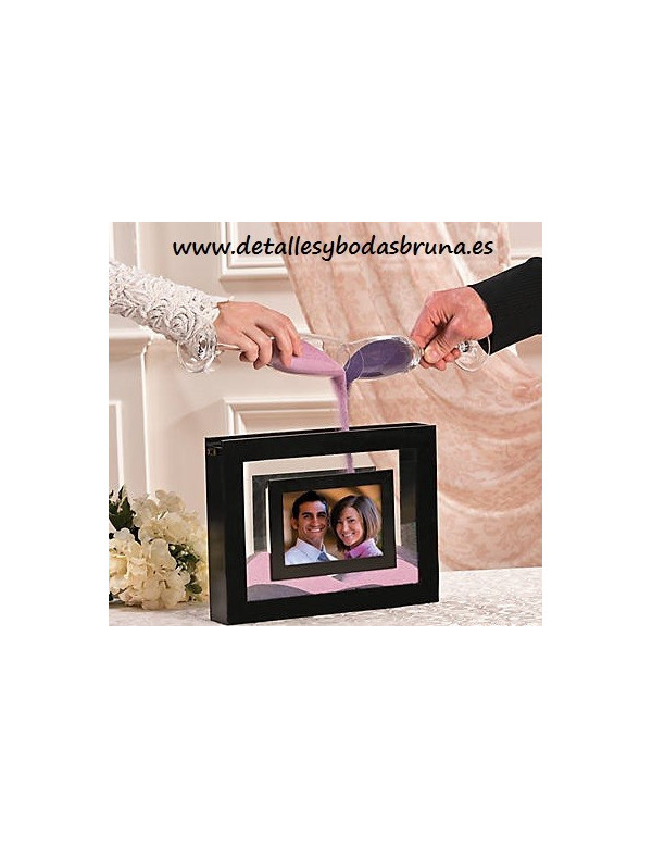 MARCO DE MADERA Y CRISTAL, PARA LA CEREMONIA DE LA ARENA O RITUAL DE LA ARENA EN COLOR negro CON TAPA DESLIZANTE Y CIERRE. TIENE MARCO PARA FOTOS DE LOS NOVIOS, FAMILIA...