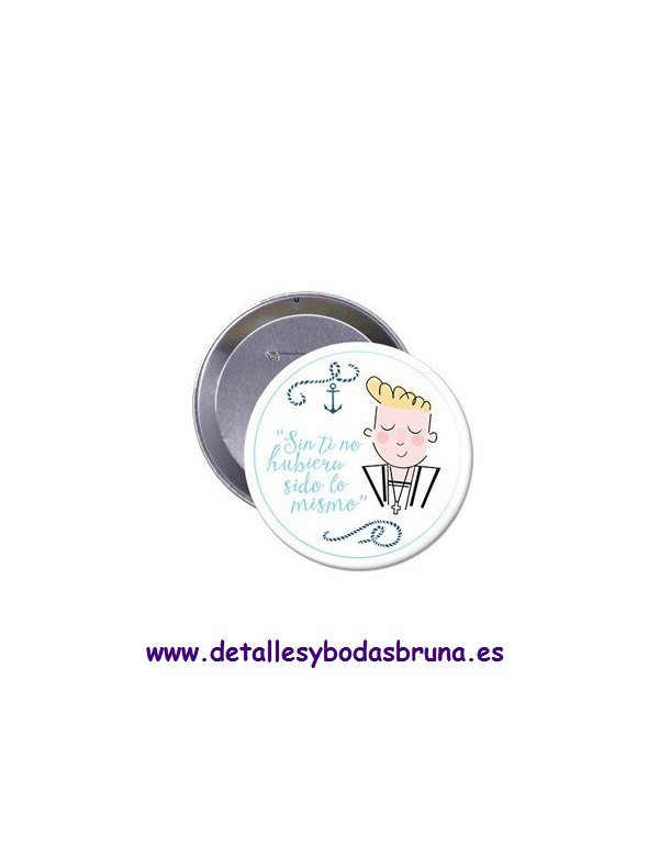 Original detalle para la comunión de tu hijo, chapas con texto impreso y dibujo de niño de comunión.