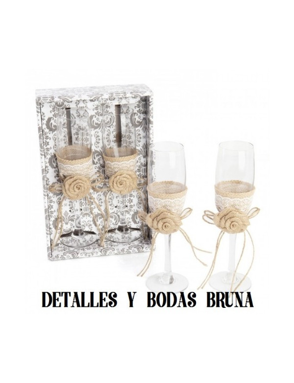 COPAS DE CHAMPAGNE PARA EL BRINDIS NUPCIAL DE ESTILO RUSTICO... DETALLE Y COMPLEMENTO INDISPENSABLE QUE NO DEBE FALTAR EN TU CELEBRACIÓN.
