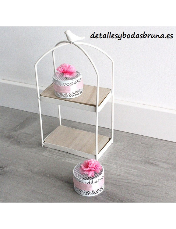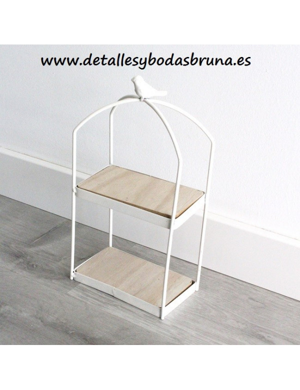 ESTANTERÍA EXPOSITOR DE MADERA y metal de estilo vintage DECORADA con un PÁJARO en su parte superior. ideal para usar en tu mesa dulce, para decorar el candy bar, para poner galletas, pequeños detalles, chuches... DONDE LA COLOQUES ACERTARÁS !