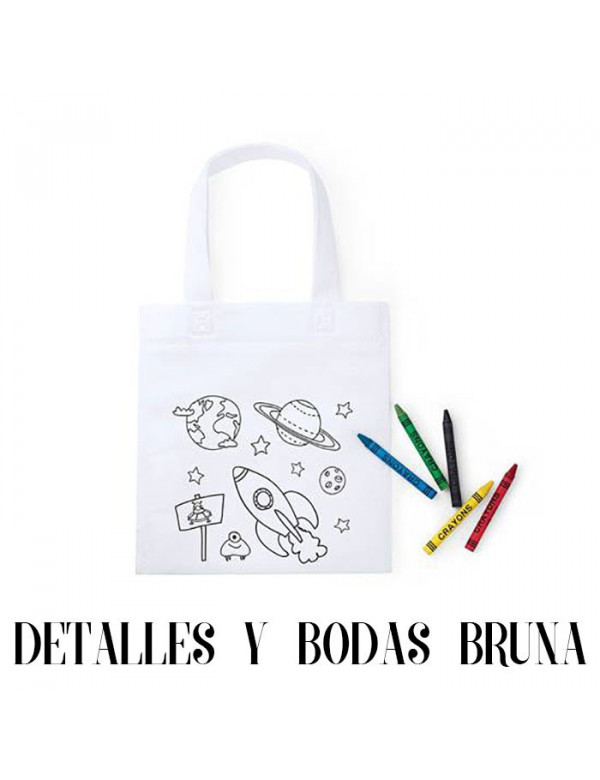 ORIGINALES BOLSAS DE TELA CON DIBUJOS DIVERTIDOS espaciales PARA COLOREAR. DETALLE ORIGINAL QUE NO DEBE FALTAR EN TU BODA, COMUNIÓN O EVENTO, PARA TENER ENTRETENIDOS A LOS MAS PEQUEÑOS.