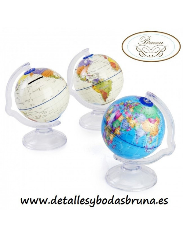 hucha globo TERRÁQUEO o bola del mundo giratorio elaborada en pvc con base, perfecta como detalle para los peques de tu boda, ANIVERSARIO, COMUNIÓN, cumpleaños, fiesta o CELEBRACIÓN. Huchas originales y divertidas para regalar a los niños de tu evento. detalle ÚTIL que seguro usarán para guardar sus monedas y aprender a ahorrar.
