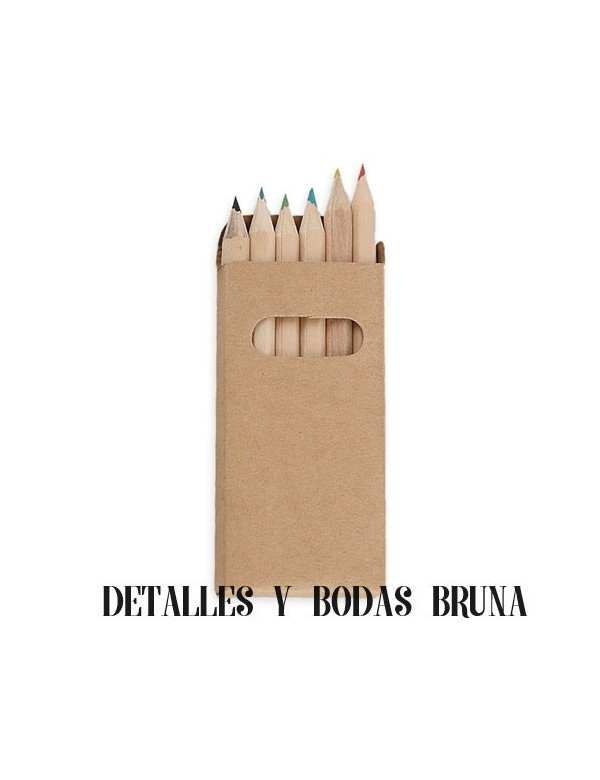Cajita de cartón con seis lápices en colores surtidos, ideal para mantener a los más peques entretenidos, entrégalos junto a nuestras libretas personalizadas, detalle original que gustará a peques y mayores.