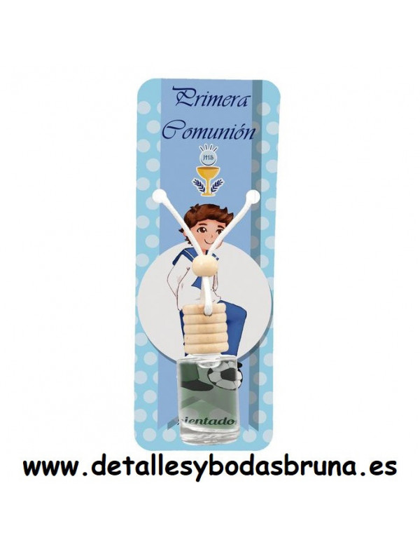 MIKADO PARA COCHE CON AROMA A MANZANA COMO DETALLE PARA LOS INVITADOS A LA PRIMERA COMUNIÓN DE TU NIÑO. REGALOS ÚTILES Y ORIGINALES MIKADOS QUE SEGURO USARÁN LOS ASISTENTES A TU EVENTO. PRESENTADO EN CAJITA DECORATIVA CON MOTIVOS DIVERTIDO NIÑO CON BALON VESTIDO DE MARINERO Y CON FONDO AZUL