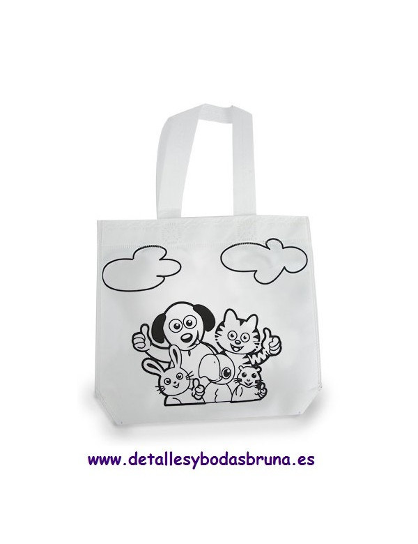 Originales bolsas de tela con dibujos divertidos para colorear. Detalle original que no debe faltar en tu boda, comunión o evento, para tener entretenidos a los mas pequeños.