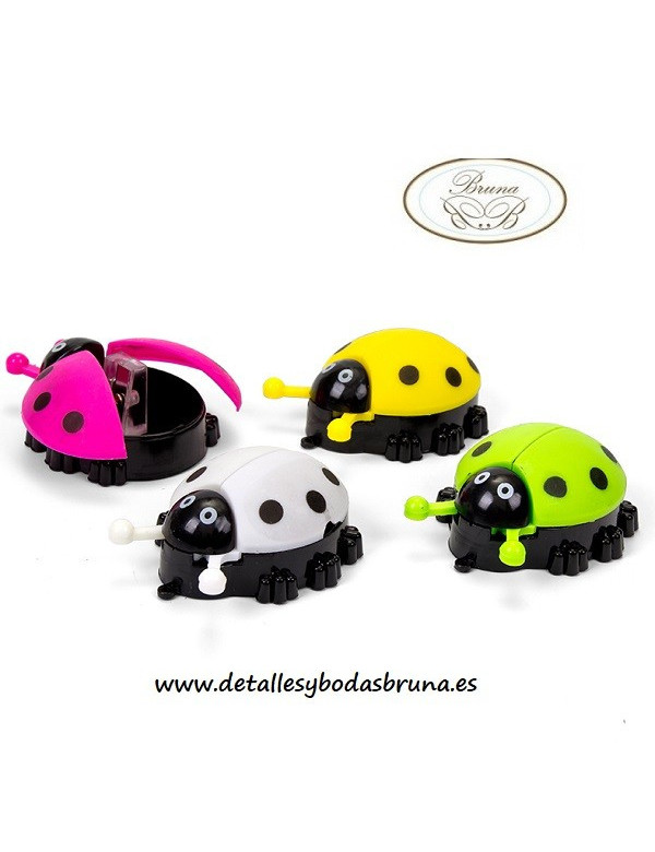 CAJA CON 24 UNIDADES DE SACAPUNTAS DE mariquitas EN COLORES SURTIDOS PARA NIÑOS Y NIÑAS. DIVERTIDO REGALO PARA CUMPLEAÑOS, BODA, COMUNIÓN Y EVENTO. DETALLE ÚTIL Y ORIGINAL PARA LOS MÁS PEQUES.