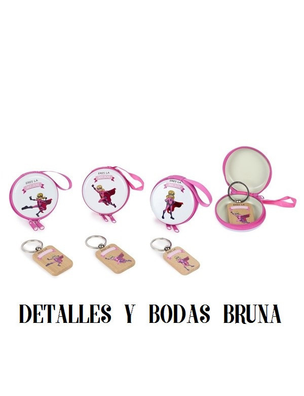 Monedero heroe niña y llavero madera