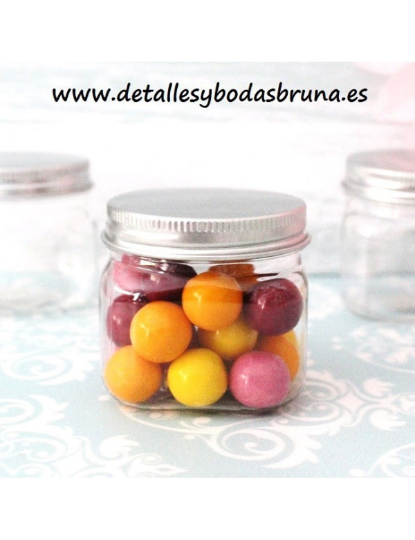 PEQUEÑos tarros o recipientes con base cuadrada DE PLÁSTICO TRANSPARENTE y CON TAPA redonda DE ALUMINIO DE COLOR PLATEADA. PERFECTAS PARA PRESENTAR PEQUEÑOS DETALLES COMO PULSERAS, CHUCHES, CARAMELOS, BOMBONES... PERSONALÍZALAS CON NUESTRAS ETIQUETAS ADHESIVAS