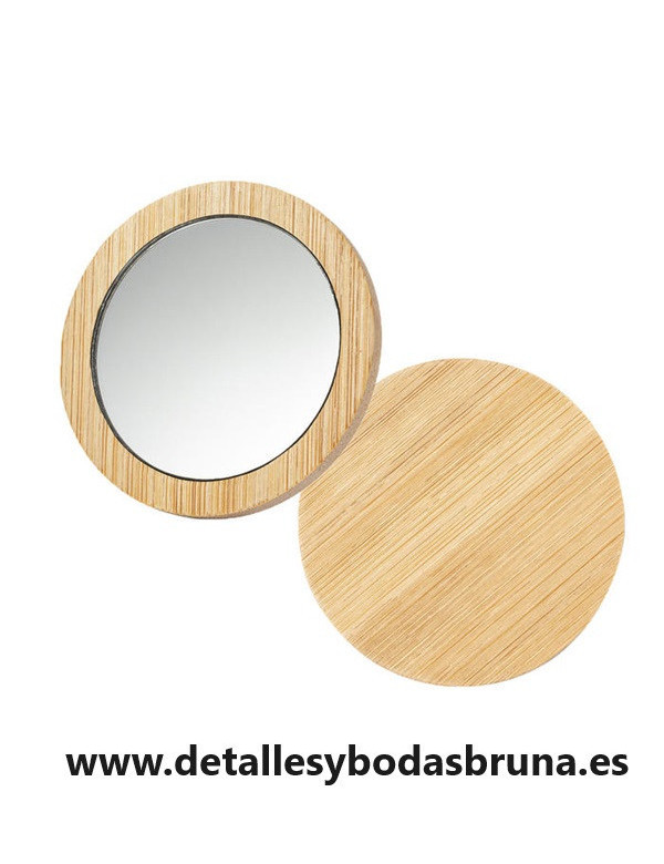 Espejos de bambu eco como detalle de Boda o Comunión, regalo original y útil para tus invitadas, muy práctico para llevar en el bolso o el coche. Te los podemos enviar personalizados con bolsas de organza, lino y tarjetas