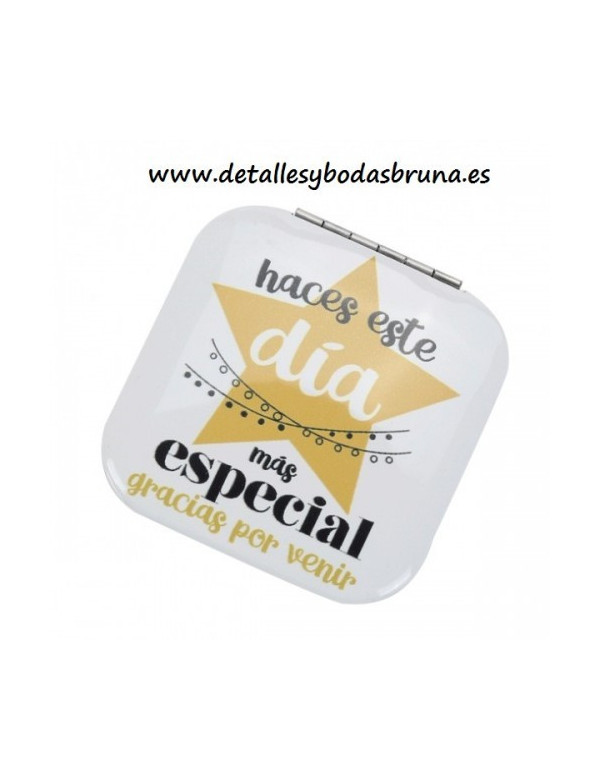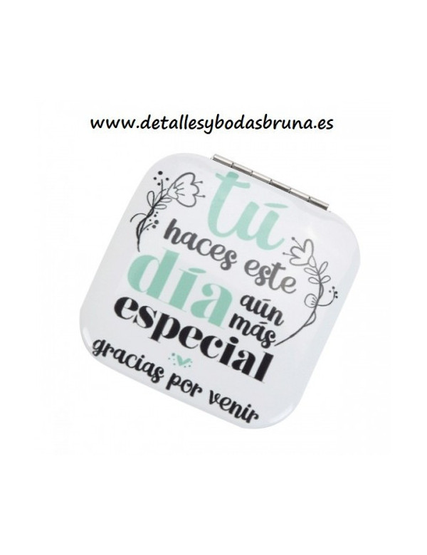Espejos Originales con Frases o Mensajes Gracias por Venir , detalle útil y original para las invitadas a tu boda, comunión o evento. Detalle practico para las mujeres de tu boda.
