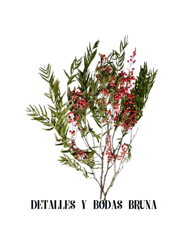 Planta preservada Falsa Pimienta en color verde las hojas y burgundy el fruto, ideal para hacer ramos de novia, para cúpulas de cristal, para decorar centros de mesa, para añadir ramitas a tus invitaciones, para coronas para las puerta, para coronitas de damas de honor... lo puedes usar de mil maneras