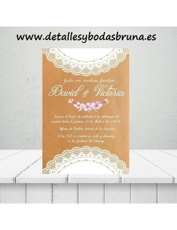 INVITACIÓN DE BODA ORIGINAL Y ELEGANTES PARA ENTREGAR A LOS INVITADOS A TU CELEBRACIÓN. INVITACIÓN DE BODA DE ESTILO vintage decorada con un dibujo de blonda en su parte superior e inferior. PERFECTA PARA BODAS BONITAS !