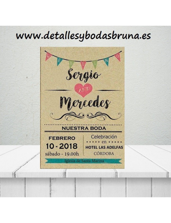 INVITACIÓN DE BODA ORIGINAL Y ELEGANTES PARA ENTREGAR A LOS INVITADOS A TU CELEBRACIÓN. INVITACIÓN CON GUIRNALDAS de estilo vintage o retro. PERFECTA PARA BODAS BONITAS !