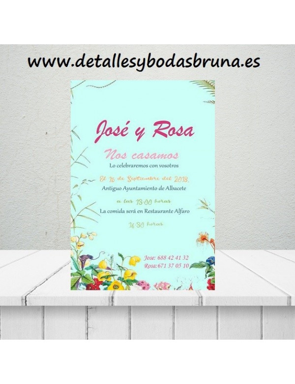 INVITACIÓN DE BODA ORIGINALES Y DIVERTIDAS PARA ENTREGAR A LOS INVITADOS A TU CELEBRACIÓN. INVITACIÓN CON flores de colores. PERFECTA PARA BODAS BONITAS !