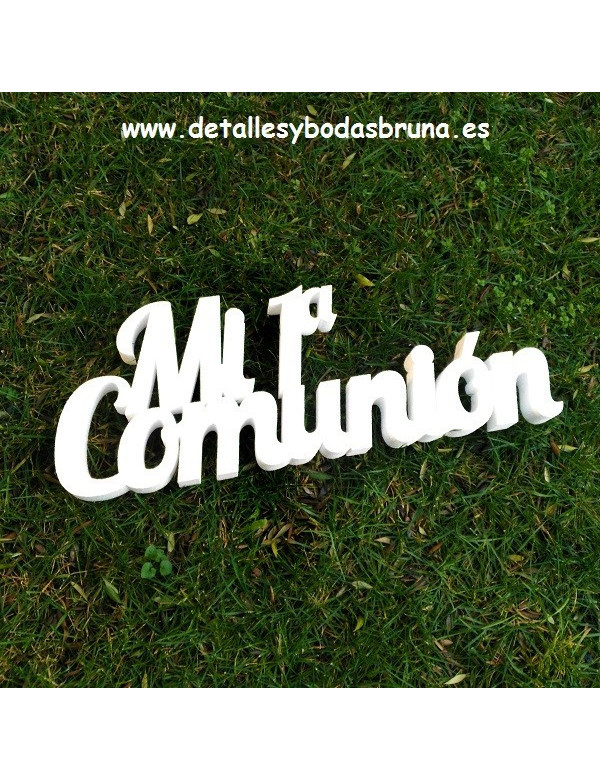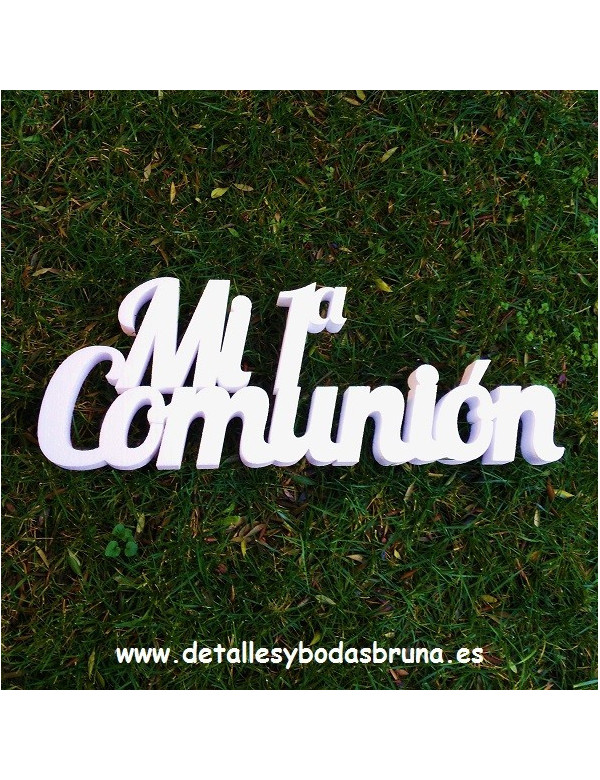 Letras de Corcho Blanco o poliespan con el texto Mi primera Comunión.