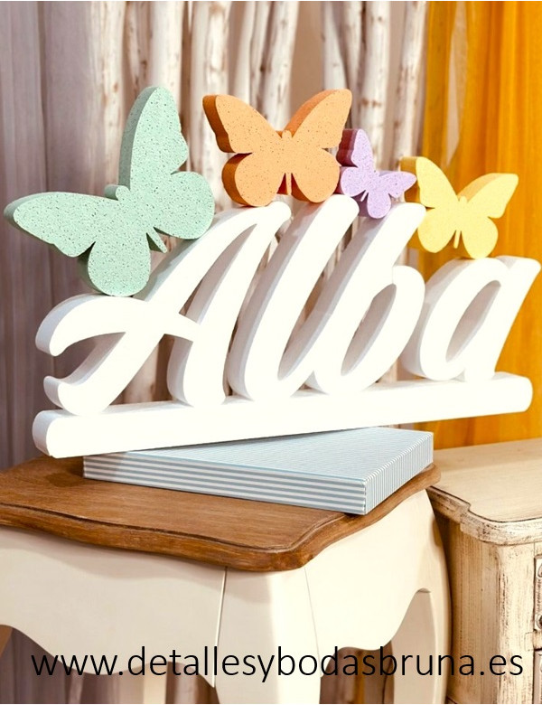 El nombre va suelto, para que coloques las mariposas como más te guste.