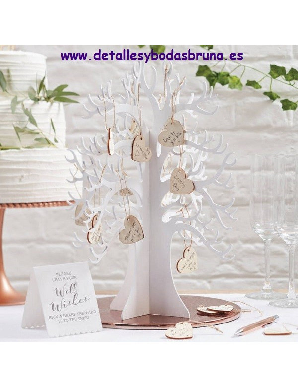 DETALLE ÚNICO PARA TU BODA O EVENTO. ÁRBOL DE MADERA IDEAL PARA QUE TUS INVITADOS CUELGUEN TARJETAS y corazones de madera CON SUS MEJORES DESEOS PARA LOS RECIÉN CASADOS.