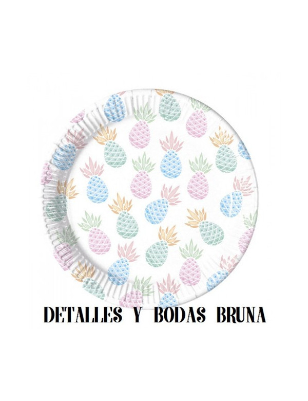 PLATOS DE CARTÓN DESECHABLE CON MOTIVOS DE piñas en colores pastel. perfectos para tu mesa dulce, para la mesa de cumpleaños, COMUNIÓN, fiesta TEMÁTICA...
