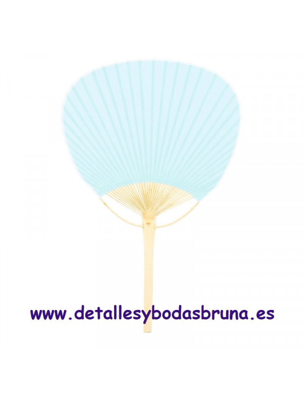 Abanico pay pay de bambu como detalle de boda original y útil. Alivia el calor de tus invitadas con estos originales Pai pai de madera y Bambú en tonos celeste