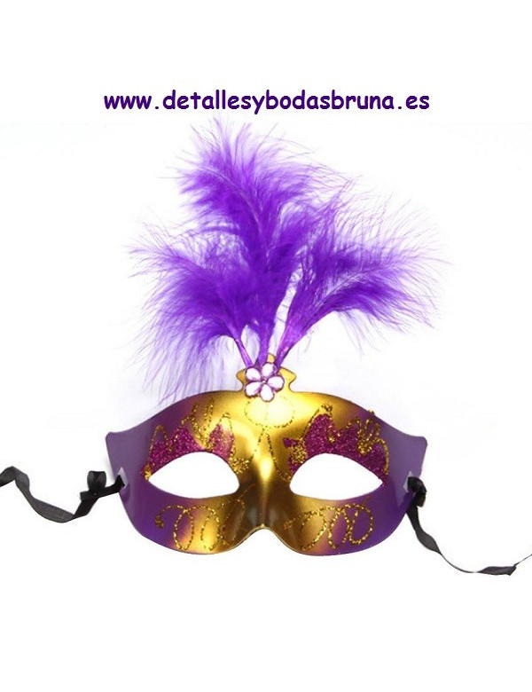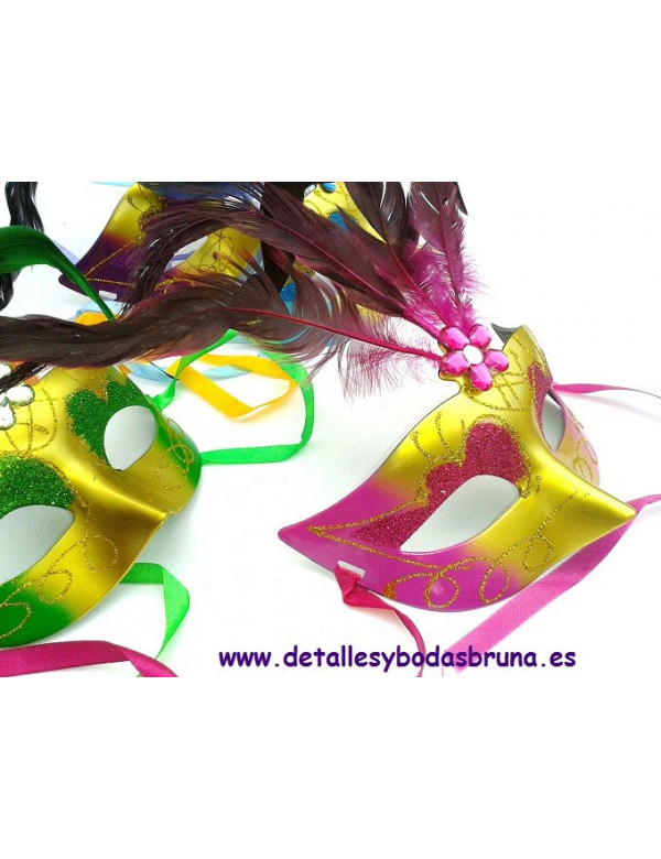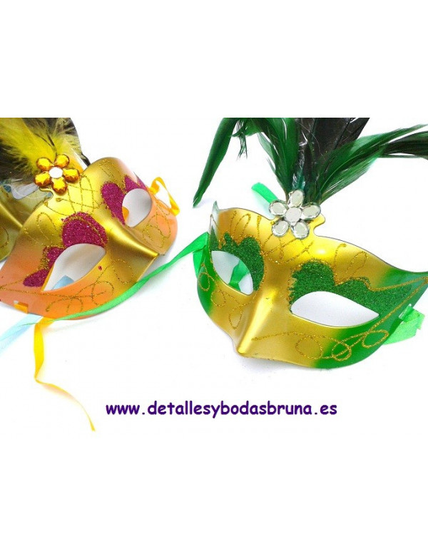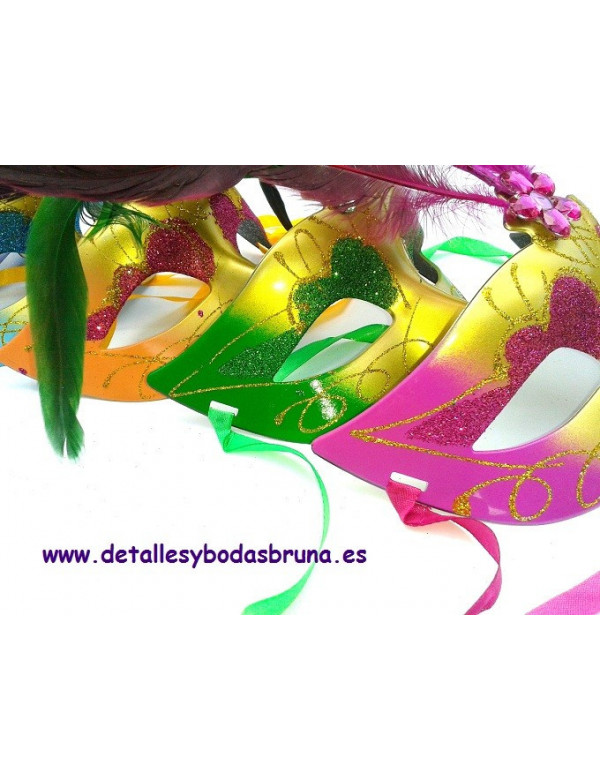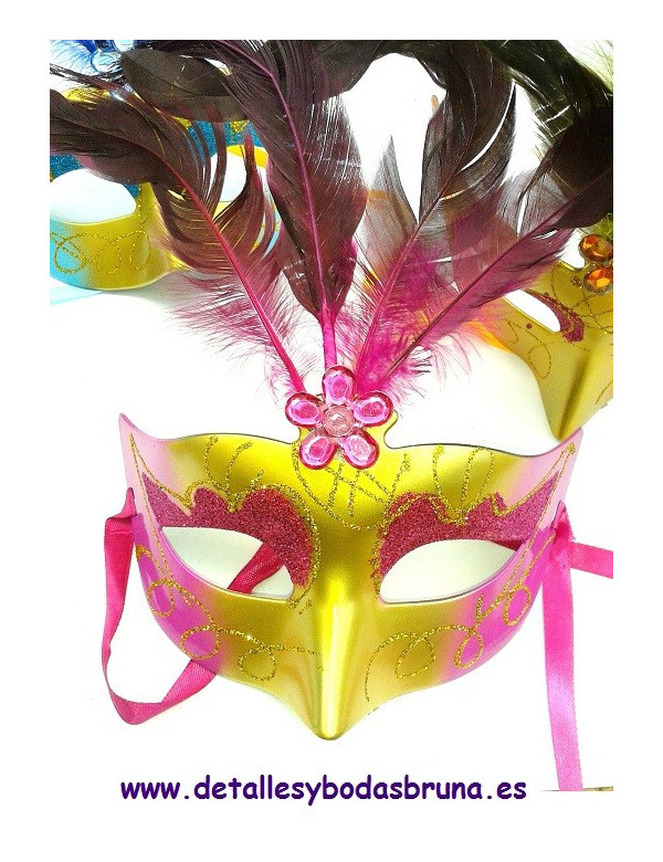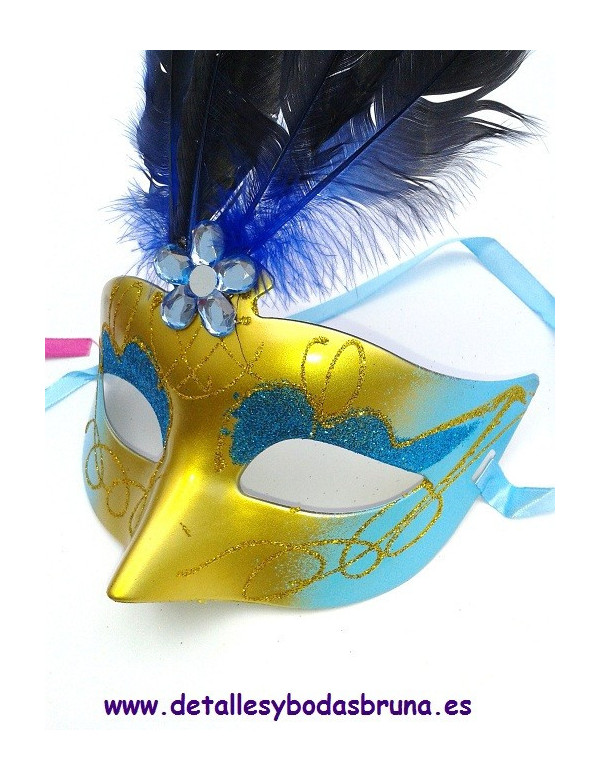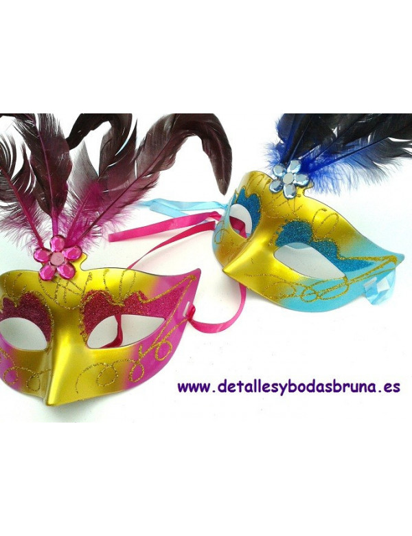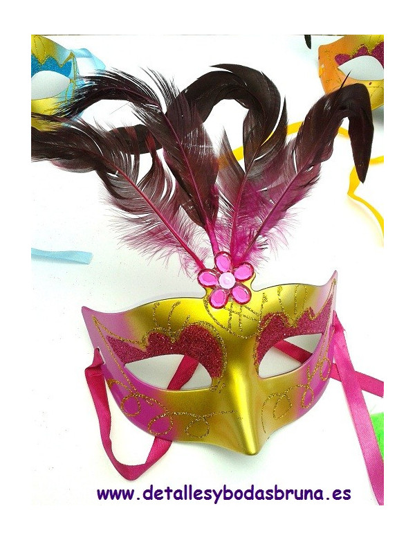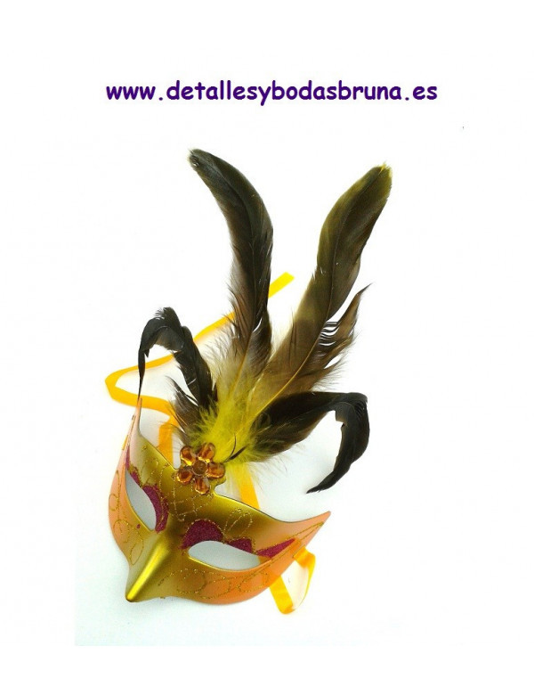 Mascara antifaz, elaborada en pasta, decorada motivos y plumas