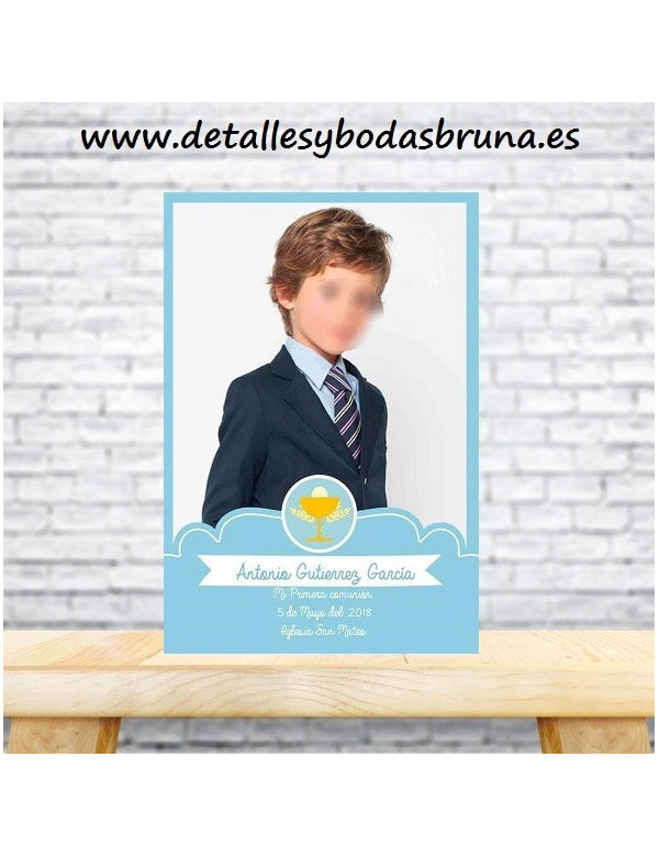 RECORDATORIO DE COMUNIÓN PARA NIÑo con foto. TE RECOMENDAMOS QUE CONJUNTES LOS DE DETALLES DE LA COMUNIÓN DE TU HIJo CON NUESTRA COLECCIÓN EN LOS MISMOS TONOS.