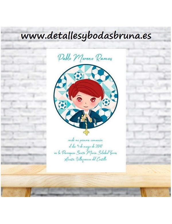 RECORDATORIO DE COMUNIÓN PARA NIÑO CON MOTIVOS DE FÚTBOL. TE RECOMENDAMOS QUE CONJUNTES LOS DE DETALLES DE LA COMUNIÓN DE TU HIJO CON NUESTRA COLECCIÓN DE DETALLES DE COMUNIÓN CON MOTIVOS FUTBOLEROS.